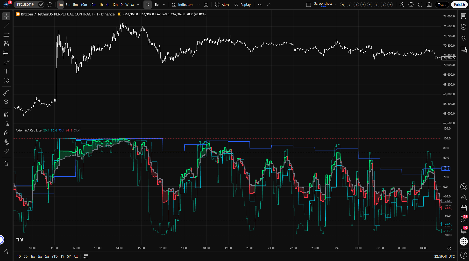 Who it does not fit: Anyone expecting the oscillator to generate entries or exits on its own. Anyone looking for a single-setting, single-timeframe tool with nothing to configure. Anyone who assumes extreme readings automatically mean a reversal is coming.